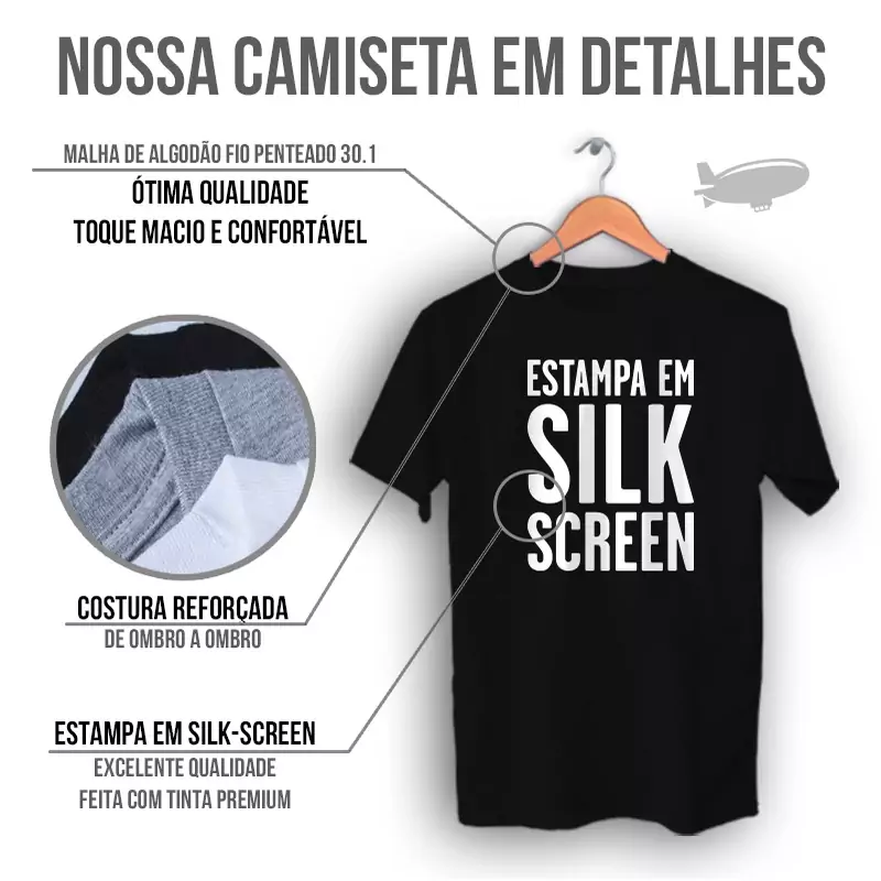 Para esta estampa utilizamos o DTF que é a mais moderna e tecnológica técnica de estamparia do mercado atualmente. Feitas com equipamento industrial de última geração, nossas estampas garantem cores vibrantes e alta durabilidade, com toque macio e confortável. Similares ao silk-screen, não racham e não desbotam. Você vai adorar!